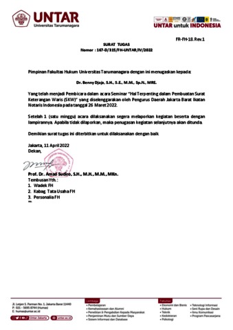 Djaja, Benny Hal Terpenting dalam Pembuatan Surat Keterangan Waris (SKW). Universitas Tarumanagara.