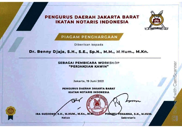 Djaja, Benny Sertifikat Pembicara. Universitas Tarumanagara.