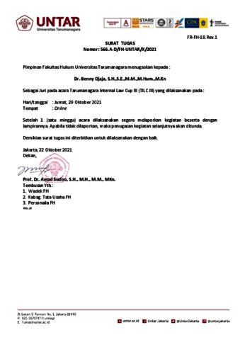 Djaja, Benny Surat Tugas. Universitas Tarumanagara.