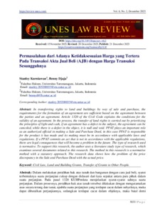 Kurniawan, Stanley and Djaja, Benny (2023) Permasalahan dari Adanya Ketidaksesuaian Harga yang Tertera Pada Transaksi Akta Jual Beli (AJB) dengan Harga Transaksi Sesungguhnya. Unes Law Review, 6 (2).