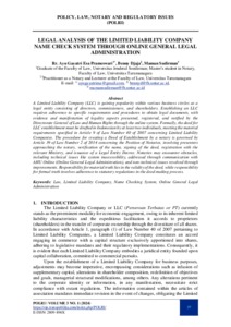 (NOMOR 62) LEGAL ANALYSIS OF THE LIMITED LIABILITY COMPANY NAME CHECK SYSTEM THROUGH ONLINE GENERAL LEGAL ADMINISTRATION.pdf Download (356kB) | Preview |