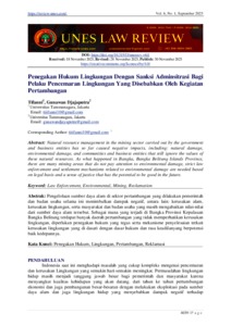 Tifanni, Tifanni1 and Djajaputra, Gunawan (2023) Penegakan Hukum Lingkungan Dengan Sanksi Adminsitrasi Bagi Pelaku Pencemaran Lingkungan Yang Disebabkan Oleh Kegiatan Pertambangan. Unes Law Review, 6 (1).