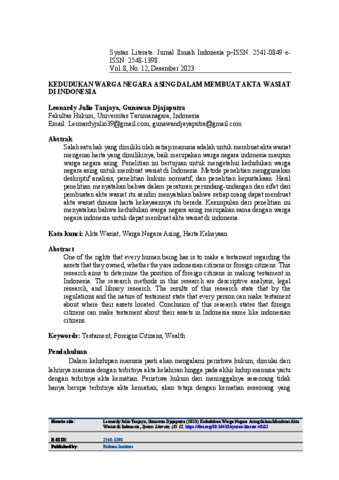 Tanjaya, Leonardy Julio (2023) Kedudukan Warga Negara Asing Dalam Membuat Akta Wasiatdi Indonesia. Syntax Literate: Jurnal Ilmiah Indonesia, 8 (12).