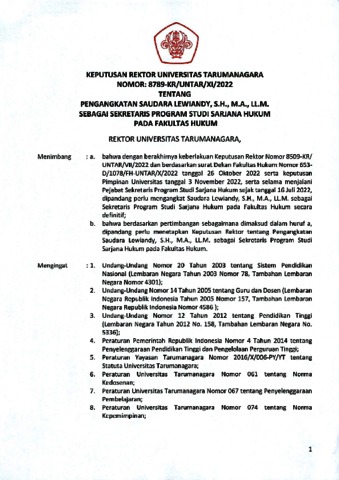 Lewiandy, Lewiandy Keputusan Rektor Universitas Tarumanagara Nomor 8789-KR/UNTAR/XI/2022. Universitas Tarumanagara.