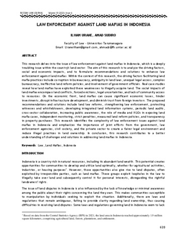 Urane, Ilham and Sudiro, Amad (2023) LAW ENFORCEMENT AGAINST LAND MAFIAS IN INDONESIA. Russian Law Journal.