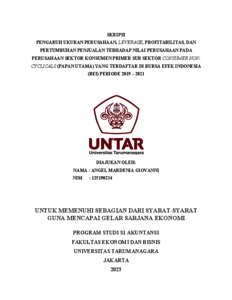 GIOVANNI, ANGEL MARDENIA (2023) PENGARUH UKURAN PERUSAHAAN, LEVERAGE, PROFITABILITAS, DAN PERTUMBUHAN PENJUALAN TERHADAP NILAI PERUSAHAAN PADA PERUSAHAAN SEKTOR KONSUMEN PRIMER SUB SEKTOR CONSUMER NONCYCLICALS (PAPAN UTAMA) YANG TERDAFTAR DI BURSA EFEK INDONESIA (BEI) PERIODE 2019 – 2021. Skripsi thesis, Universitas Tarumanagara.