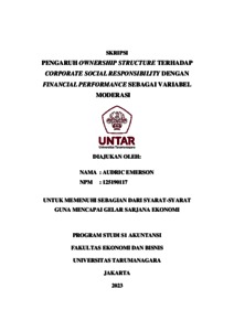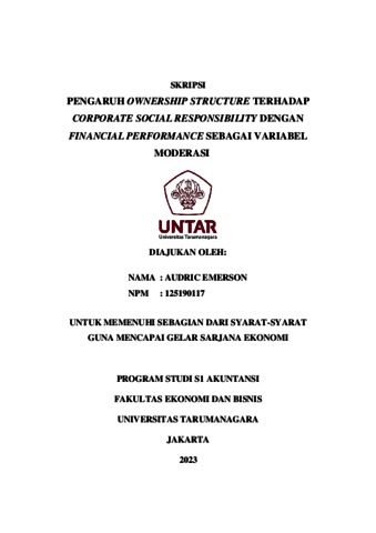 EMERSON, AUDRIC (2023) PENGARUH OWNERSHIP STRUCTURE TERHADAP CORPORATE SOCIAL RESPONSIBILITY DENGAN FINANCIAL PERFORMANCE SEBAGAI VARIABEL MODERASI. Skripsi thesis, Universitas Tarumanagara.