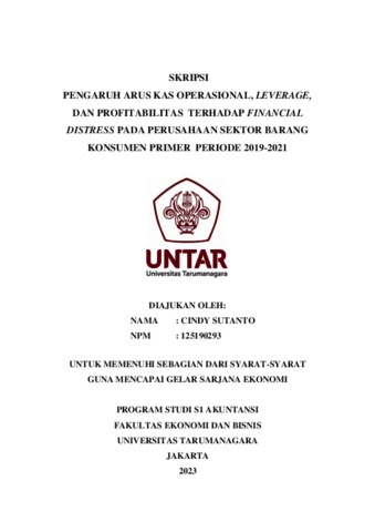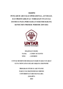 SUTANTO, CINDY (2023) PENGARUH ARUS KAS OPERASIONAL, LEVERAGE, DAN PROFITABILITAS TERHADAP FINANCIAL DISTRESS PADA PERUSAHAAN SEKTOR BARANG KONSUMEN PRIMER PERIODE 2019-2021. Skripsi thesis, Universitas Tarumanagara.
