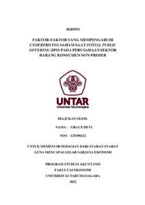 DEVI, GRACE (2022) FAKTOR-FAKTOR YANG MEMPENGARUHI UNDERPRICING SAHAM SAAT INITIAL PUBLIC OFFERING (IPO) PADA PERUSAHAAN SEKTOR BARANG KONSUMEN NON PRIMER. Skripsi thesis, Universitas Tarumanagara.