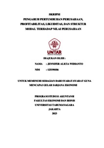 WIDIANTO, JENNIFER ALICIA (2023) PENGARUH PERTUMBUHAN PERUSAHAAN, PROFITABILITAS, LIKUIDITAS, DAN STRUKTUR MODAL TERHADAP NILAI PERUSAHAAN. Skripsi thesis, Universitas Tarumanagara.