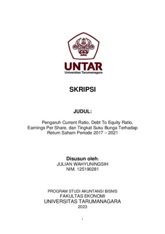 WAHYUNINGSIH, JULIAN (2023) Pengaruh Current Ratio, Debt To Equity Ratio, Earnings Per Share, dan Tingkat Suku Bunga Terhadap Return Saham Periode 2017 – 2021. Skripsi thesis, Universitas Tarumanagara.
