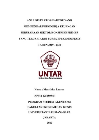Lauren, Marvinico (2022) ANALISIS FAKTOR-FAKTOR YANG MEMPENGARUHI KINERJA KEUANGAN PERUSAHAAN SEKTOR KONSUMEN PRIMER YANG TERDAFTAR DI BURSA EFEK INDONESIA TAHUN 2019 - 2021. Skripsi thesis, Universitas Tarumanagara.
