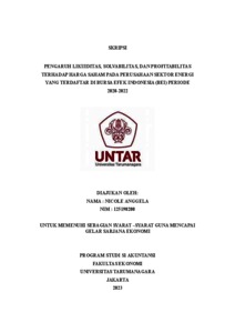 ANGGELA, NICOLE (2023) PENGARUH LIKUIDITAS, SOLVABILITAS, DAN PROFITABILITAS TERHADAP HARGA SAHAM PADA PERUSAHAAN SEKTOR ENERGI YANG TERDAFTAR DI BURSA EFEK INDONESIA (BEI) PERIODE 2020-2022. Skripsi thesis, Universitas Tarumanagara.