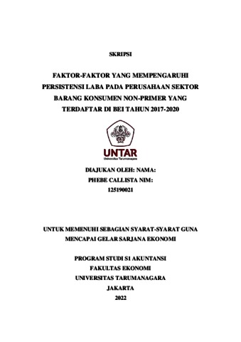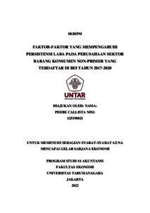 CALLISTA, PHEBE (2022) FAKTOR-FAKTOR YANG MEMPENGARUHI PERSISTENSI LABA PADA PERUSAHAAN SEKTOR BARANG KONSUMEN NON-PRIMER YANG TERDAFTAR DI BEI TAHUN 2017-2020. Skripsi thesis, Universitas Tarumanagara.