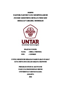 THENISIA, SHELA (2023) FAKTOR-FAKTOR YANG MEMPENGARUHI INCOME SMOOTHING DENGAN FIRM SIZE SEBAGAI VARIABEL MODERASI. Skripsi thesis, Universitas Tarumanagara.