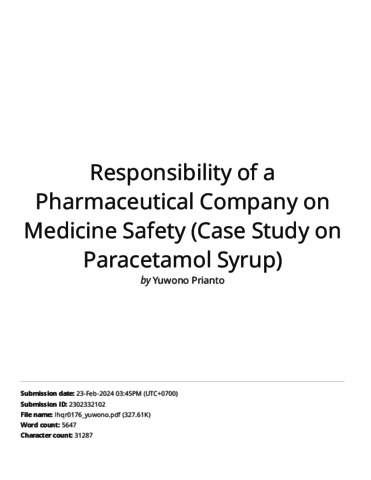 Responsibility of a Pharmaceutical Company on Medicine Safety (Case Study on Paracetamol Syrup).pdf Download (2MB) | Preview |