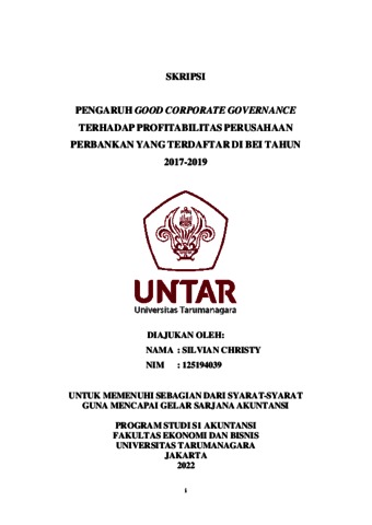 CHRISTY, SILVIAN (2022) PENGARUH GOOD CORPORATE GOVERNANCE TERHADAP PROFITABILITAS PERUSAHAAN PERBANKAN YANG TERDAFTAR DI BEI TAHUN 2017-2019. Skripsi thesis, Universitas Tarumanagara.