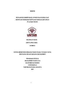 PRATAMA, ADITYA (2023) PENGARUH KOMPENSASI, LINGKUNGAN KERJA DAN MOTIVASI TERHADAP KEPUASAN KERJA KARYAWAN PT ANAM TIOCIU. Skripsi thesis, Universitas Tarumanagara.