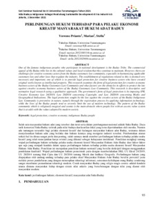 Prianto, Yuwono and Marian, Marian and Stella, Stella (2021) PERLINDUNGAN HUKUM TERHADAP PARA PELAKU EKONOMI KREATIF MASYARAKAT HUKUM ADAT BADUY. SERINA III.