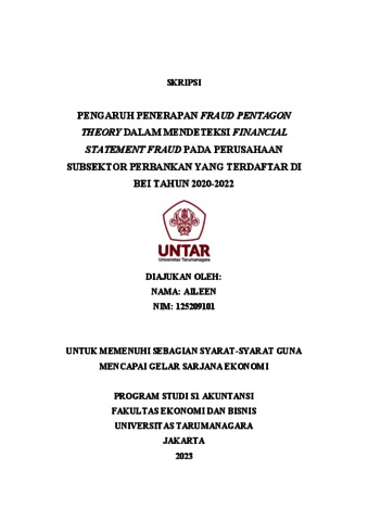 Aileen, Aileen (2023) PENGARUH PENERAPAN FRAUD PENTAGON THEORY DALAM MENDETEKSI FINANCIAL STATEMENT FRAUD PADA PERUSAHAAN SUBSEKTOR PERBANKAN YANG TERDAFTAR DI BEI TAHUN 2020-2022. Skripsi thesis, Fakultas Ekonomi dan Bisnis.