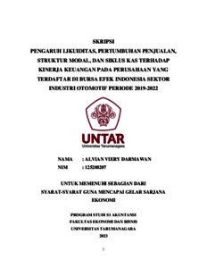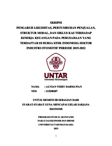 Darmawan, Alvian Viery (2023) PENGARUH LIKUIDITAS, PERTUMBUHAN PENJUALAN, STRUKTUR MODAL, DAN SIKLUS KAS TERHADAP KINERJA KEUANGAN PADA PERUSAHAAN YANG TERDAFTAR DI BURSA EFEK INDONESIA SEKTOR INDUSTRI OTOMOTIF PERIODE 2019-2022. Skripsi thesis, Fakultas Ekonomi dan Bisnis.