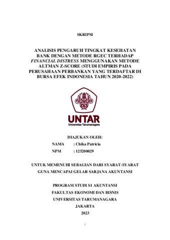 Keywords: Risk Profile, Good Corporate Governance, Earnings, Capital, RGEC, Financial Distress, Altman Z-score Penelitian ini bertujuan untuk mengumpulkan bukti empiris mengenai pengaruh tingkat kesehatan bank dengan metode RGEC terhadap financial distress. Variabel independen dalam penelitian ini terdiri dari risk profile, good corporate governance, earnings dan capital, sementara variabel dependen dalam penelitian ini adalah financial distress yang diukur dengan Altman Z-score. Objek penelitian ini adalah perusahaan perbankan yang terdaftar di Bursa Efek Indonesia (BEI) selama tahun 2020-2022. Teknik pemilihan sampel menggunakan metode purposive sampling, yang memperoleh 29 sampel perusahaan perbankan dengan total 87 data. Teknik analisis data dilakukan melalui analisis regresi linear berganda dan diolah menggunakan Eviews versi 12. Hasil dari penelitian ini menunjukkan bahwa variabel risk profile dan good corporate governance tidak memiliki pengaruh yang signifikan terhadap financial distress, sedangkan earnings dan capital memiliki pengaruh positif dan signifikan terhadap financial distress.
