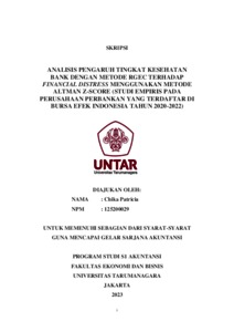 Patricia, Chika (2023) ANALISIS PENGARUH TINGKAT KESEHATAN BANK DENGAN METODE RGEC TERHADAP FINANCIAL DISTRESS MENGGUNAKAN METODE ALTMAN Z-SCORE (STUDI EMPIRIS PADA PERUSAHAAN PERBANKAN YANG TERDAFTAR DI BURSA EFEK INDONESIA TAHUN 2020-2022). Skripsi thesis, Fakultas Ekonomi dan Bisnis.