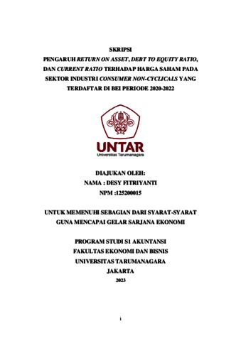 Fitriyanti, Desy (2023) PENGARUH RETURN ON ASSET, DEBT TO EQUITY RATIO, DAN CURRENT RATIO TERHADAP HARGA SAHAM PADA SEKTOR INDUSTRI CONSUMER NON-CYCLICALS YANG TERDAFTAR DI BEI PERIODE 2020-2022. Skripsi thesis, Fakultas Ekonomi dan Bisnis.