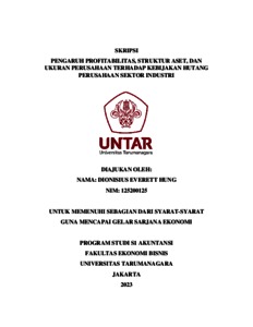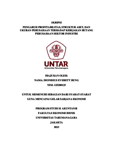 Hung, Dionisius Everett (2023) PENGARUH PROFITABILITAS, STRUKTUR ASET, DAN UKURAN PERUSAHAAN TERHADAP KEBIJAKAN HUTANG PERUSAHAAN SEKTOR INDUSTRI. Skripsi thesis, Fakultas Ekonomi.