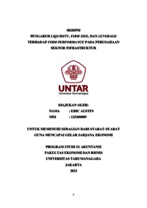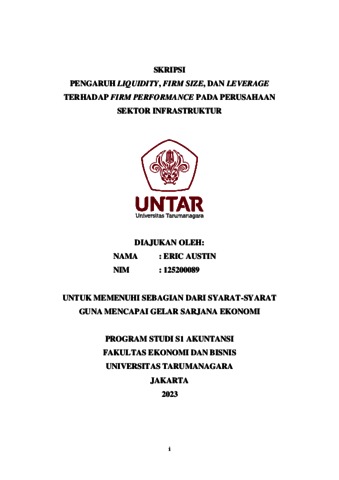 Austin, Eric (2023) PENGARUH LIQUIDITY, FIRM SIZE, DAN LEVERAGE TERHADAP FIRM PERFORMANCE PADA PERUSAHAAN SEKTOR INFRASTRUKTUR. Skripsi thesis, Fakultas Ekonomi dan Bisnis.