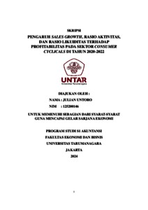 Untoro, Julian (2023) PENGARUH SALES GROWTH, RASIO AKTIVITAS, DAN RASIO LIKUIDITAS TERHADAP PROFITABILITAS PADA SEKTOR CONSUMER CYCLICALS DI TAHUN 2020-2022. Skripsi thesis, Universitas Tarumanagara.