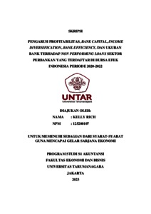 Rich, Kelly (2023) PENGARUH PROFITABILITAS, BANK CAPITAL, INCOME DIVERSIFICATION, BANK EFFICIENCY, DAN UKURAN BANK TERHADAP NON PERFORMING LOANS SEKTOR PERBANKAN YANG TERDAFTAR DI BURSA EFEK INDONESIA PERIODE 2020-2022. Skripsi thesis, Universitas Tarumanagara.