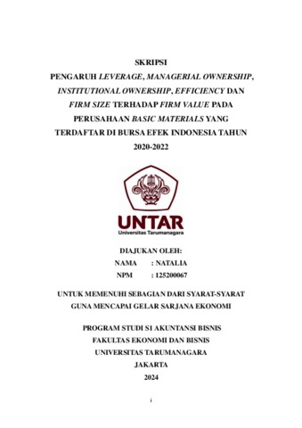 Kata kunci: Firm Value, Leverage, Managerial and Institutional Ownership, Efficiency, Firm Size