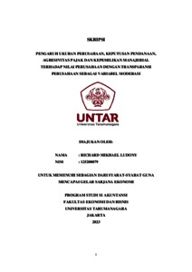 Ludony, Richard Mikhael (2023) PENGARUH UKURAN PERUSAHAAN, KEPUTUSAN PENDANAAN, AGRESIVITAS PAJAK DAN KEPEMILIKAN MANAJERIAL TERHADAP NILAI PERUSAHAAN DENGAN TRANSPARANSI PERUSAHAAN SEBAGAI VARIABEL MODERASI. Skripsi thesis, Universitas Tarumanagara.