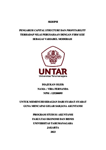 Fernanda, Vira (2023) PENGARUH CAPITAL STRUCTURE DAN PROFITABILITY TERHADAP NILAI PERUSAHAAN DENGAN FIRM SIZE SEBAGAI VARIABEL MODERASI. Skripsi thesis, Universitas Tarumanagara.