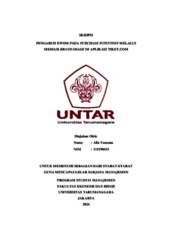 Yuszana, Alfa (2023) JUDUL SKRIPSI : PENGARUH EWOM PADA PURCHASE INTENTION MELALUI MEDIASI BRAND IMAGE DI APLIKASI TIKET.COM. Skripsi thesis, Universitas Tarumanagara.