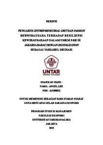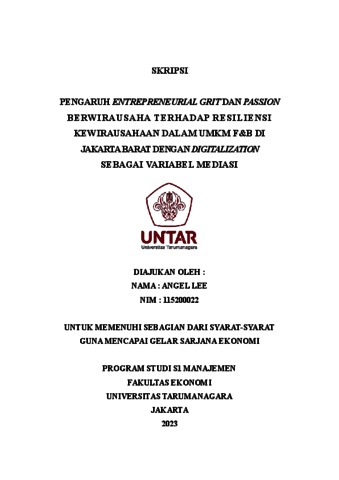 Lee, Angel (2023) PENGARUH ENTREPRENEURIAL GRIT DAN PASSION B E RWI R A U S AH A T E R H A D AP R E S I L I E N S I KEWIRAUSAHAAN DALAM UMKM F&B DI JAKARTA BARAT DENGAN DIGITALIZATION SEBAGAI VARIABEL MEDIASI. Skripsi thesis, Universitas Tarumanagara.
