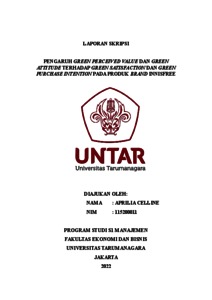 Celline, Aprilia (2023) PENGARUH GREEN PERCEIVED VALUE DAN GREEN ATTITUDE TERHADAP GREEN SATISFACTION DAN GREEN PURCHASE INTENTION PADA PRODUK BRAND INNISFREE. Skripsi thesis, Universitas Tarumanagara.