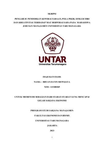 Siewijaya, Bryan Davin (2023) PENGARUH PENDIDIKAN KEWIRAUSAHAAN, POLA PIKIR, EFIKASI DIRI DAN KREATIVITAS TERHADAP NIAT BERWIRAUSAHA PADA MAHASISWA JURUSAN MANAJAMEN UNIVERSITAS TARUMANAGARA. Skripsi thesis, Universitas Tarumanagara.