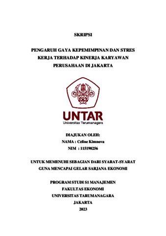 Kimnova, Celine (2023) PENGARUH GAYA KEPEMIMPINAN DAN STRES KERJA TERHADAP KINERJA KARYAWAN PERUSAHAAN DI JAKARTA. Skripsi thesis, Universitas Tarumanagara.