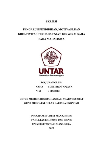 Tanjaya, Delviro (2023) PENGARUH PENDIDIKAN, MOTIVASI, DAN KREATIVITAS TERHADAP NIAT BERWIRAUSAHA PADA MAHASISWA. Skripsi thesis, Universitas Tarumanagara.