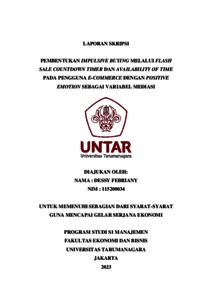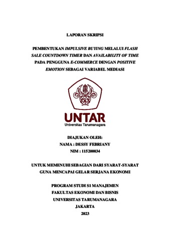 Febriany, Dessy (2023) PEMBENTUKAN IMPULSIVE BUYING MELALUI FLASH SALE COUNTDOWN TIMER DAN AVAILABILITY OF TIME PADA PENGGUNA E-COMMERCE DENGAN POSITIVE EMOTION SEBAGAI VARIABEL MEDIASI. Skripsi thesis, Universitas Tarumanagara.