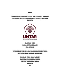 Megasari, Devia (2023) PENGARUH SERVICE QUALITY, TRUST DAN E-PAYMENT TERHADAP PURCHASE INTENTION PADA LAYANAN STREAMING NETFLIX DI JAKARTA. Skripsi thesis, Universitas Tarumanagara.