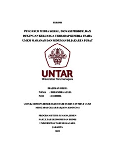 Aulia, Dheandra (2023) PENGARUH MEDIA SOSIAL, INOVASI PRODUK, DAN DUKUNGAN KELUARGA TERHADAP KINERJA USAHA UMKM MAKANAN DAN MINUMAN DI JAKARTA PUSAT. Skripsi thesis, Universitas Tarumanagara.