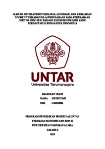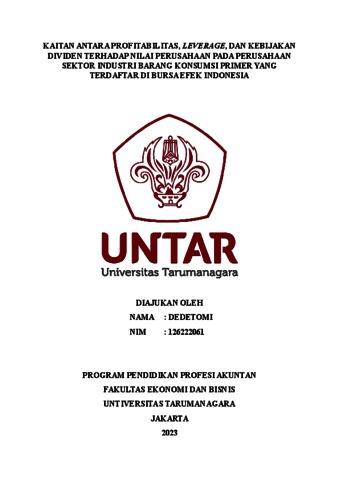 DEDETOMI, DEDETOMI (2023) KAITAN ANTARA PROFITABILITAS, LEVERAGE, DAN KEBIJAKAN DIVIDEN TERHADAP NILAI PERUSAHAAN PADA PERUSAHAAN SEKTOR INDUSTRI BARANG KONSUMSI PRIMER YANG TERDAFTAR DI BURSA EFEK INDONESIA. Masters thesis, Universitas Tarumanagara.