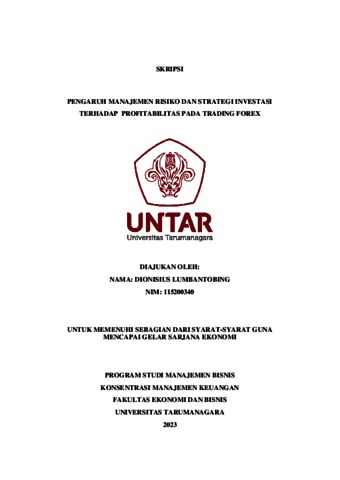 Lumbantobing, Dionisius (2023) PENGARUH MANAJEMEN RISIKO DAN STRATEGI INVESTASI TERHADAP PROFITABILITAS PADA TRADING FOREX. Skripsi thesis, Universitas Tarumanagara.