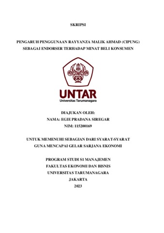 Siregar, Egie Pradana (2023) PENGARUH PENGGUNAAN RAYYANZA MALIK AHMAD (CIPUNG) SEBAGAI ENDORSER TERHADAP MINAT BELI KONSUMEN. Skripsi thesis, Universitas Tarumanagara.