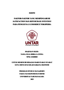 Lavenis, Elga Ribka (2023) FAKTOR-FAKTOR YANG MEMPENGARUHI SATISFACTION DAN REPURCHASE INTENTION PADA PENGGUNA E-COMMERCE TOKOPEDIA. Skripsi thesis, Universitas Tarumanagara.