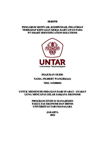 Wangidjaja, Filbert (2023) PENGARUH MOTIVASI, KOMPENSASI, PELATIHAN TERHADAP KEPUASAN KERJA KARYAWAN PADA PT SMART IDENTIFICATION SOLUTIONS. Skripsi thesis, Universitas Tarumanagara.