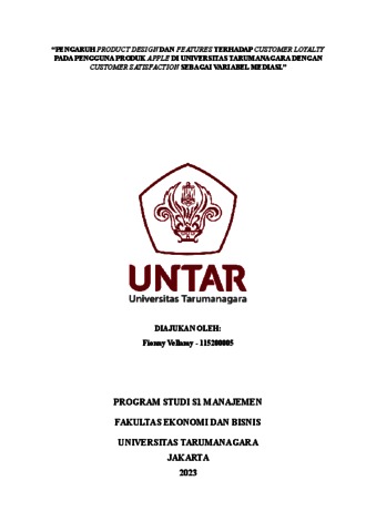 (E) Abstract: This research aims to empirically examine the influence of product design and features on customer loyalty among users of Apple products, mediated by customer satisfaction. The study employs a quantitative method and utilizes primary data as the data source. The research design is descriptive cross-sectional. The target population for this research is students at Tarumanagara University, and the sample consists of